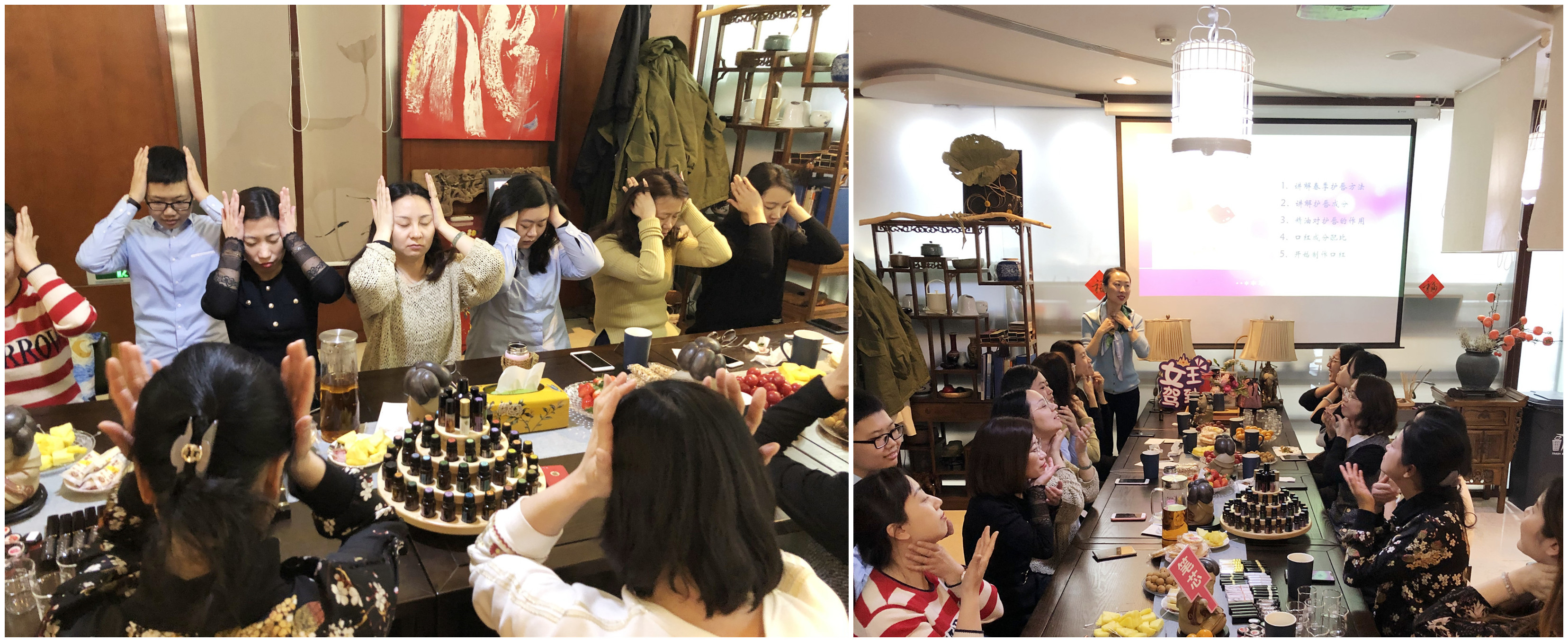 本次活動(dòng)特邀研習(xí)精油芳香理療多年的大咖講師主講,老師為我們介紹精油的多種使用方法,讓我們深深地感受到了精油的獨(dú)特魅力。從來(lái)都不知道精油還能這么用!